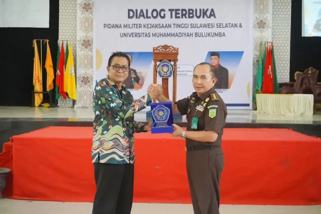 BULUKUMBA, Universitas Muhammadiyah Bulukumba (UM Bulukumba) menjadi tuan rumah pelaksanaan Dialog Terbuka bertajuk “Pidana Militer Kejaksaan Tinggi Sulawesi Selatan”, Selasa (11/11/2025). Kegiatan ini dihadiri langsung oleh perwakilan Kejaksaan Tinggi (Kejati) Sulawesi Selatan, serta diikuti oleh lima perguruan tinggi di Kabupaten Bulukumba, yakni UM Bulukumba, STIKES Panrita Husada, Akademi Kebidanan Thahirah, Institut Teknologi dan Bisnis Bina Adnata, dan STAI Al-Gazali Bulukumba. Kegiatan ini menjadi ruang diskusi terbuka dalam memahami penegakan hukum pidana militer di Indonesia, sekaligus menjadi sarana edukasi hukum bagi mahasiswa sebagai calon pemimpin dan agen perubahan. Rektor UM Bulukumba, Dr. H. Jumase Basra, M.Si., dalam sambutannya menyampaikan apresiasi kepada Kejaksaan Tinggi Sulawesi Selatan atas kepercayaannya menunjuk UM Bulukumba sebagai tuan rumah kegiatan tersebut. “Terima kasih dan penghargaan yang setinggi-tingginya kepada Kejaksaan Tinggi Provinsi Sulawesi Selatan. Ini merupakan bentuk kepercayaan yang luar biasa kepada kami di UM Bulukumba untuk menjadi tuan rumah,” ujarnya. Beliau juga berharap kegiatan ini dapat memberi manfaat luas, tidak hanya bagi mahasiswa UM Bulukumba tetapi juga bagi seluruh peserta dari berbagai perguruan tinggi yang hadir. “Semoga dialog hari ini bisa berjalan dengan baik dan lancar, serta memberikan pengalaman berpikir bagi mahasiswa bagaimana memahami dan menegakkan supremasi hukum sebagai agen perubahan,” tambahnya. Sementara itu, Dr. M. Asri Arief, S.H., M.Si., CTMP, selaku Asisten Pidana Militer Kejaksaan Tinggi Sulawesi Selatan, menyampaikan pentingnya keterlibatan mahasiswa dalam memahami sistem hukum, khususnya bidang pidana militer. “Melalui dialog ini, kita bisa berbagi informasi dan wawasan. Kami berharap ada respon balik dari mahasiswa agar acara ini tidak sekadar bersifat seremonial, tetapi menjadi ruang belajar yang hidup dan dinamis,” ungkapnya. Lebih lanjut, Dr. Asri juga menekankan pentingnya kerja sama antara lembaga pendidikan dan institusi hukum. “Kami berharap ke depan terjalin kolaborasi antara perguruan tinggi dengan Kejaksaan, baik dalam pendampingan hukum maupun penanganan perkara-perkara tertentu yang membutuhkan pendekatan akademik dan edukatif,” tutupnya. Kegiatan ini diakhiri dengan sesi tanya jawab interaktif antara mahasiswa dan narasumber, yang berlangsung dengan antusias dan penuh semangat intelektual. (Syayyidina Ali) Artikel ini telah tayang di suaramuhammadiyah.id dengan judul: Dialog Terbuka Kejati Sulsel Hadir di UM Bulukumba, https://suaramuhammadiyah.id/read/dialog-terbuka-kejati-sulsel-hadir-di-um-bulukumba